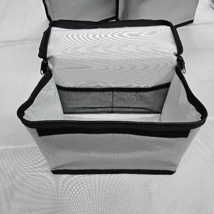 Manufactured from high-temperature fiberglass fireproof fabric, this bag helps contain flames, sparks, smoke, and heat generated by battery thermal runaway. It is a practical finished product that demonstrates the real-world application of RUISHUN’s fireproof materials.